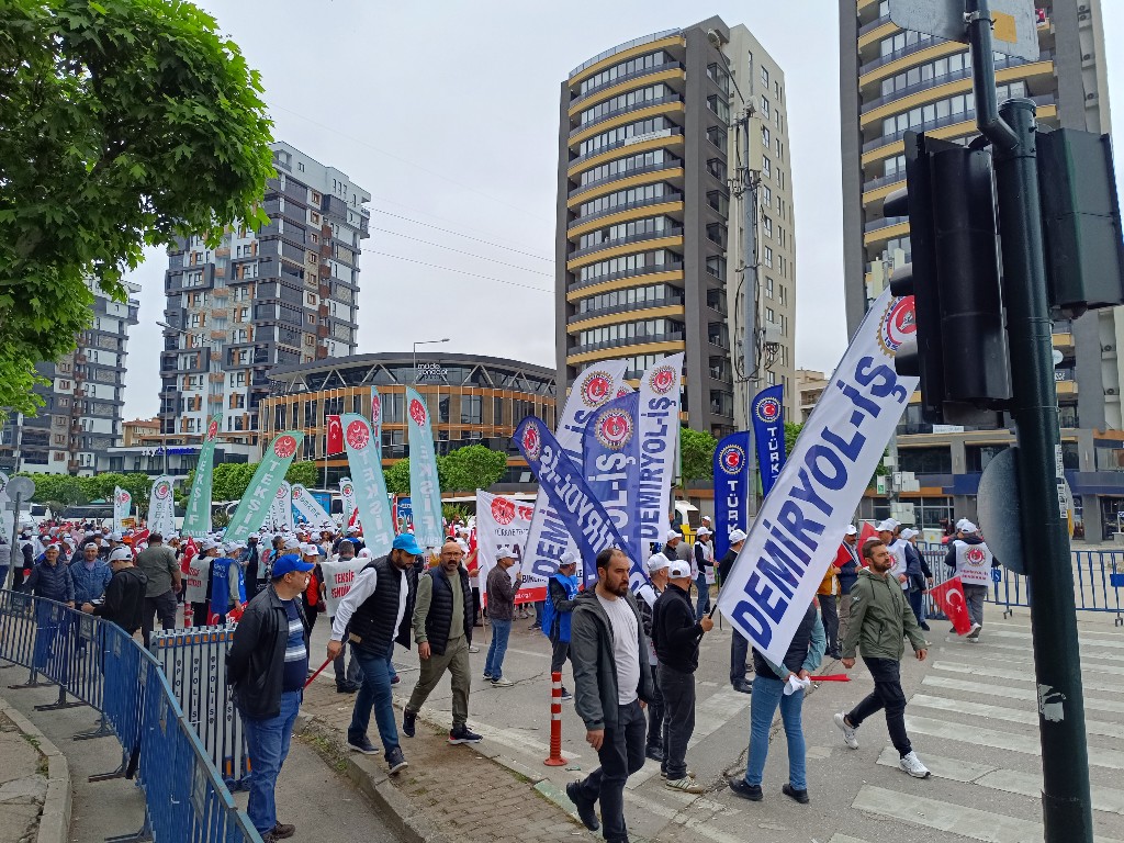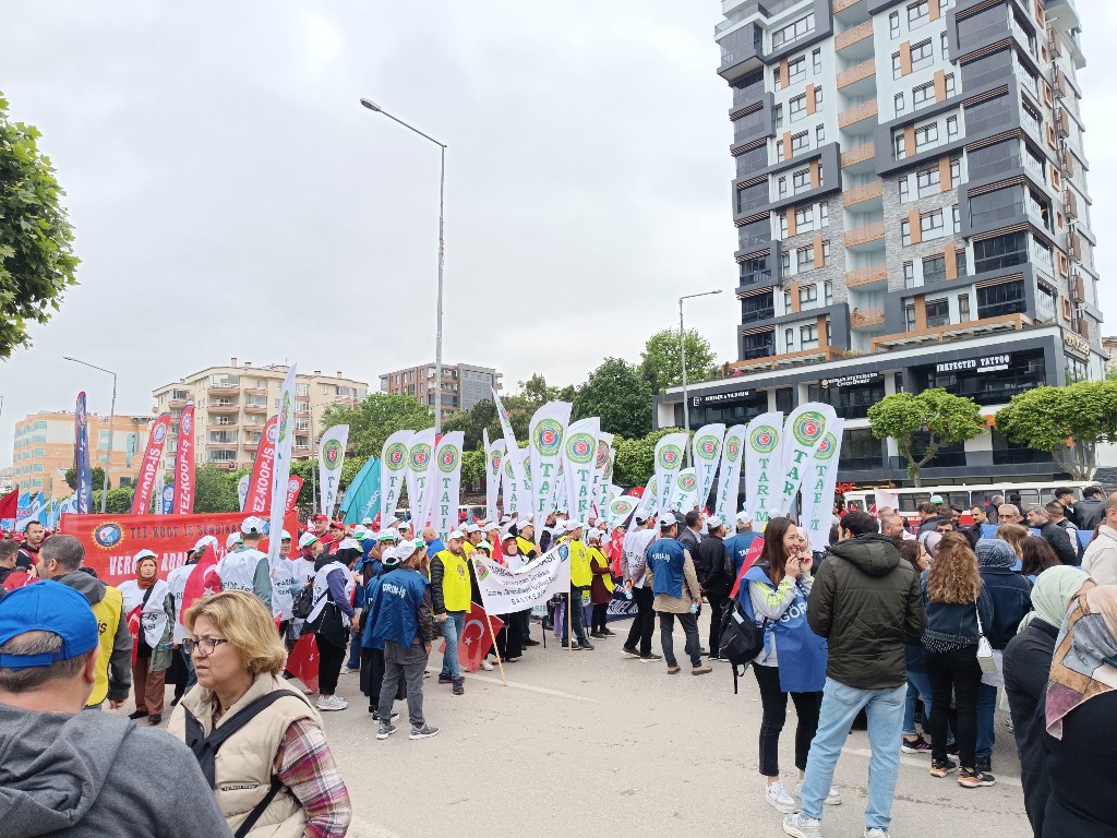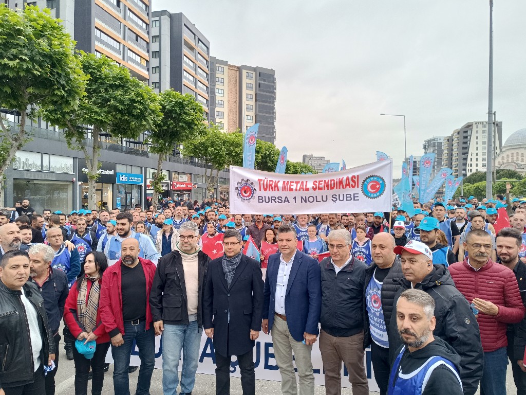 On binlerce işçi, 1 Mayıs Emek ve Dayanışma Bayramı’nı kutlamak için alanlardaydı. TÜRK-İŞ üyesi işçiler de Bursa’da buluştu. Konfederasyona bağlı sendikaların üyeleri, Nilüfer ilçesindeki Fatih Sultan Mehmet Bulvarı'nda toplanarak kortej oluşturdu. Yaklaşık 500 metrelik yürüyüş işçilerin sloganları, pankartları ve coşkusu eşliğinde yapıldı., sendika ve vatandaş alanda toplandı.