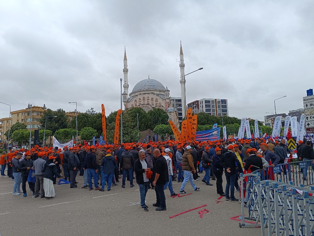 Sabah saatlerinde Türk-İş’in çağrısıyla bir araya gelen on binlerce işçi, FSM Bulvarı'nda buluşup hastane alanına yürüdü. Mitingin ana gövdesini metal işçileri oluştururken, metal işçilerinin ana talebi ‘Vergide adalet’ oldu. Sık sık “Dilim dilim soyuluyoruz, vergide adalet istiyoruz” sloganı atıldı.